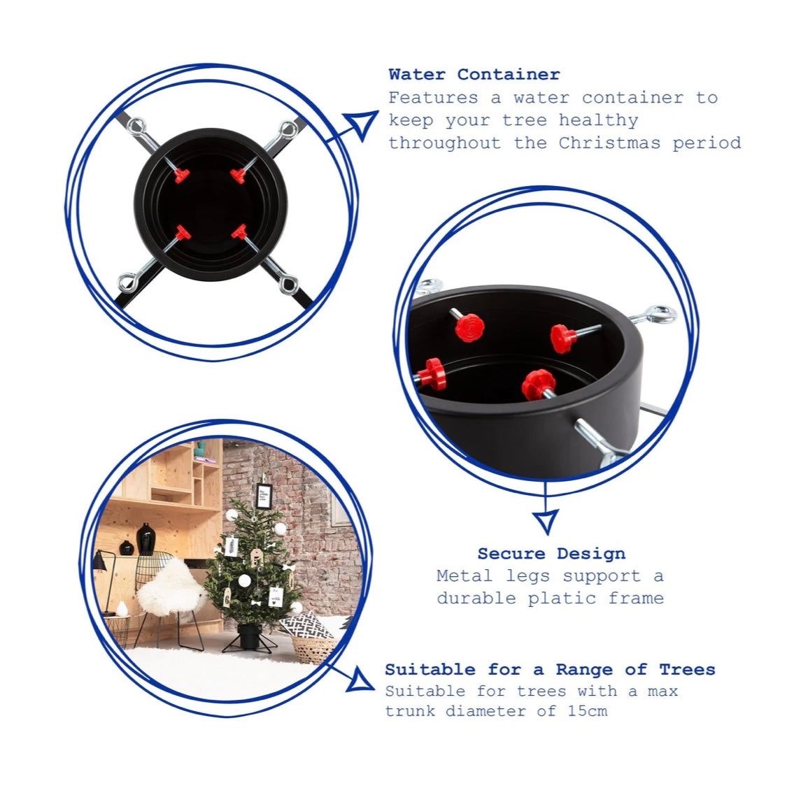 A thirst-quenching 2.8L water basin keeps your pine looking full and nourished